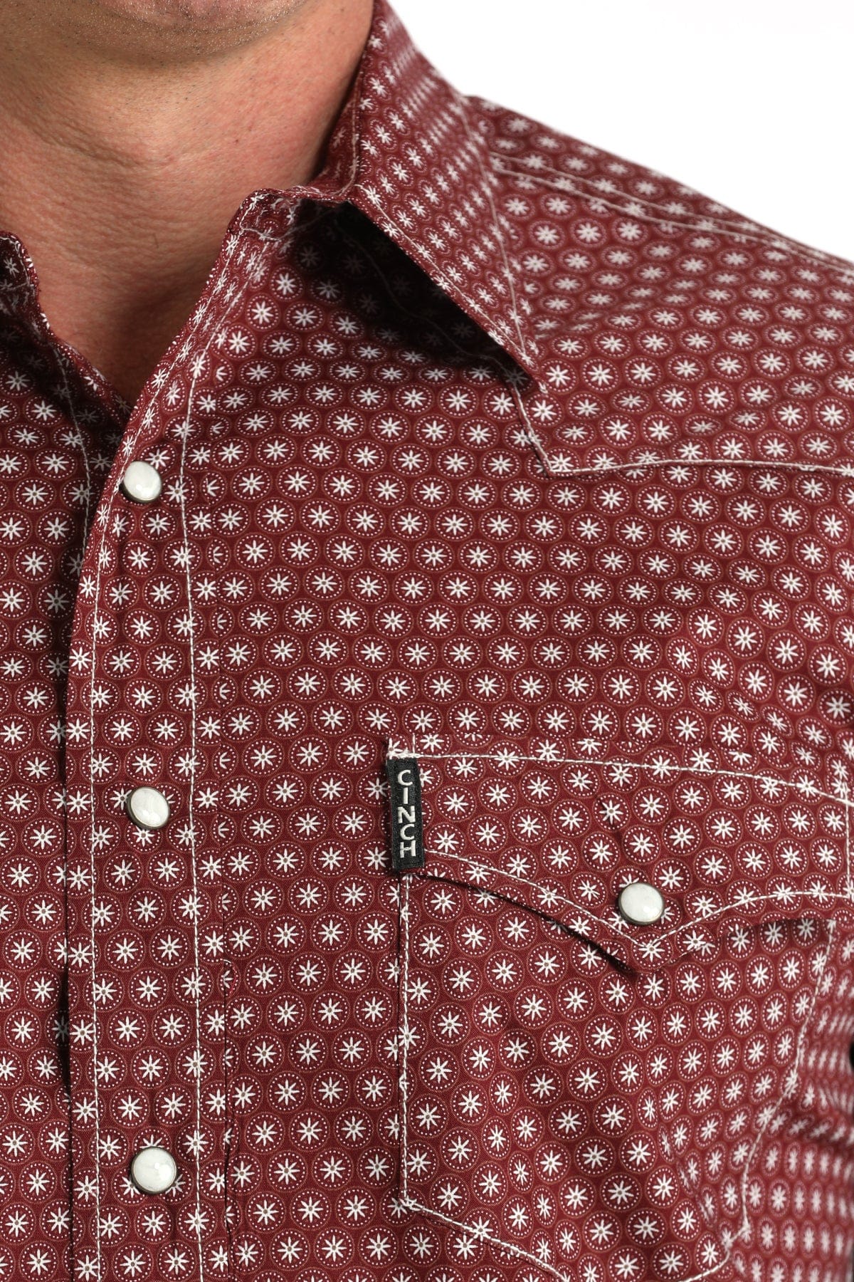 Men's Cinch LS Burg Print western Snap Shirt with White Stitching