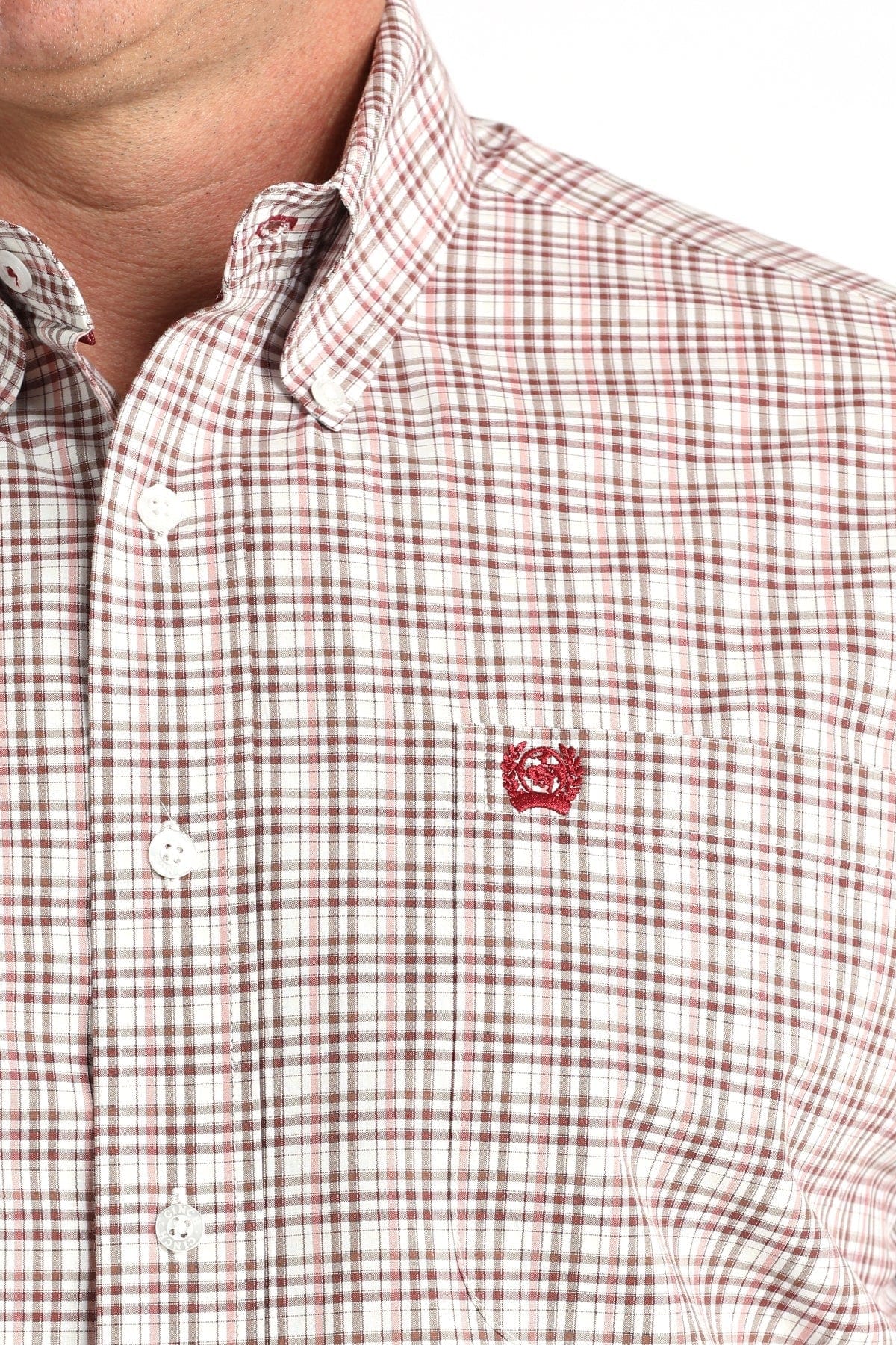 Mens Cinch White/Red Small Plaid Classic Fit Button Down