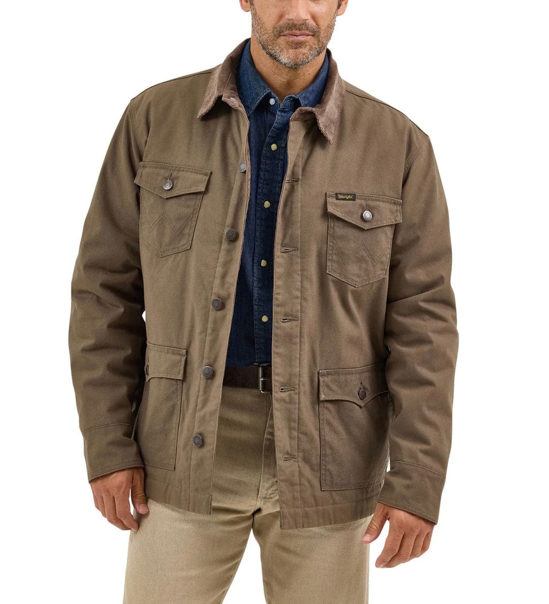 Cold weather and long days can't keep our Western Lined Canvas Barn Coat from helping you take care of every item on your to-do list. It's made of waxed cotton canvas for durability. It comes with a quilted flannel lining to keep you warm without weighing you down. You'll also have six total pockets for your essentials, a corduroy collar and cuff for extra comfort, Western styling, button front, and a relaxed fit.