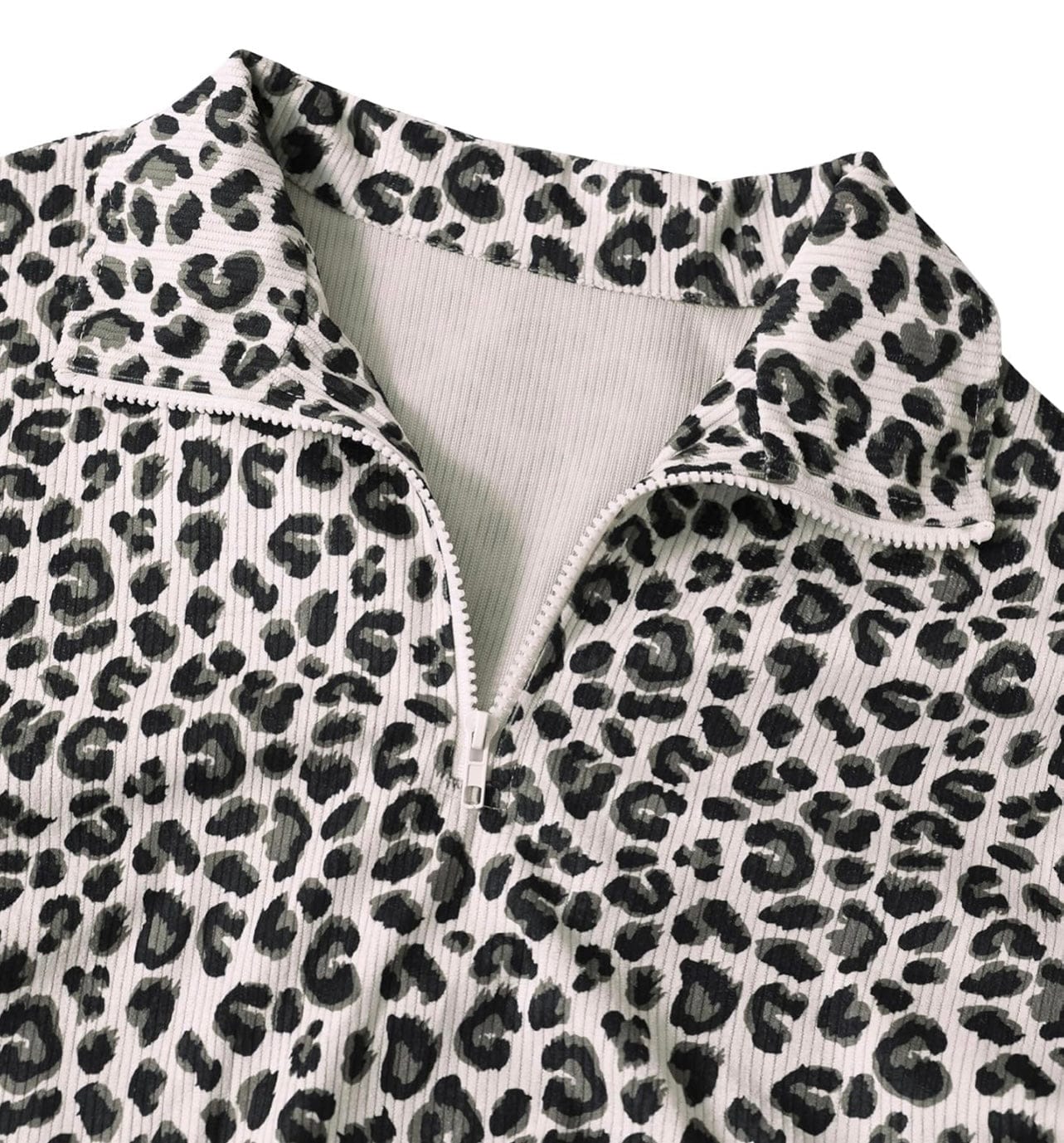 Leopard Corduroy Half-Zip Pullover | White