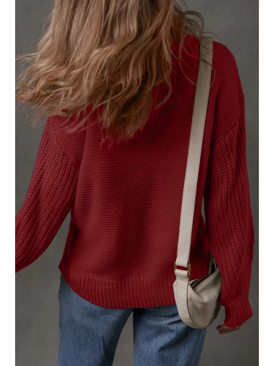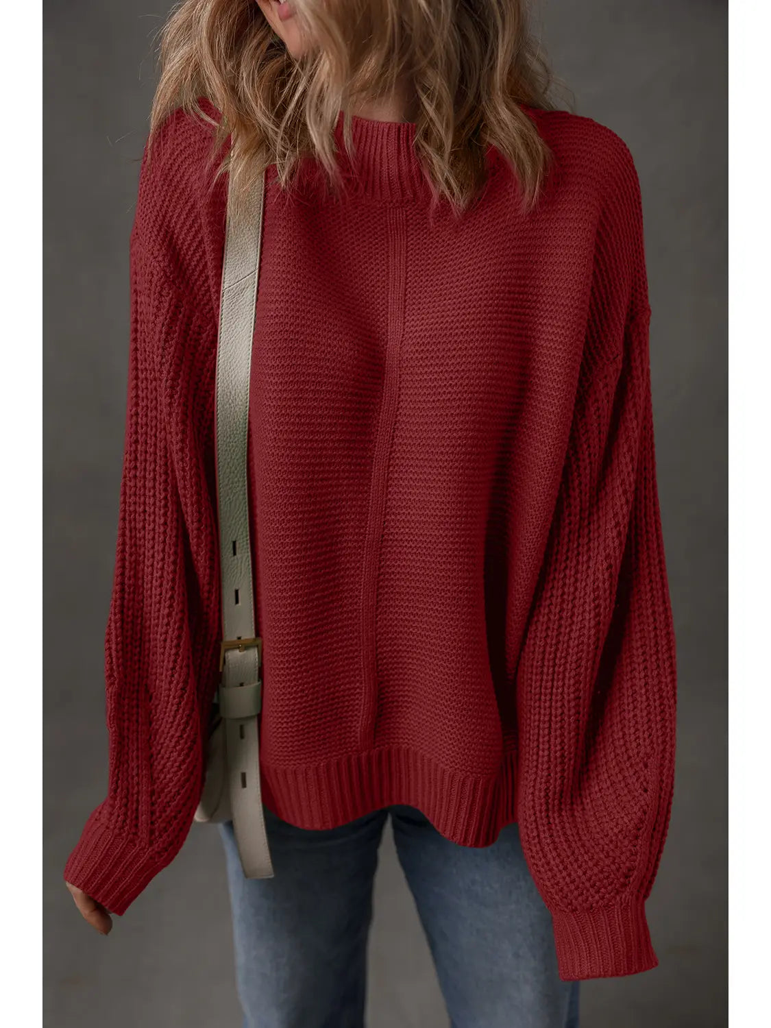 🧶 Solid color sweater, easy to match with any outfit. ✨ Front seam adds a trendy, modern touch. 💧 Drop-shoulder design for a relaxed fit. 🌀 Loose cut offers comfort and chic style